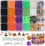 - Halloween Bracelet Making Kit – This clay beading set includes 900pcs colourful clay beads, 1050pcs seed beads, 54pcs halloween charm beads, 20pcs Eye element clay beads, 100pcs gold accessories, 160pcs round beads, 7pcs Halloween pendant,2 rolls of 33ft elastic cord.