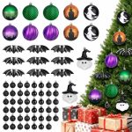 68pcs Christmas Tree Ornaments,Shatterproof Halloween Christmas Tree Decorations Hanging Ball Ornaments Set with Bat and Witch Decor for Party Indoor Home Decor