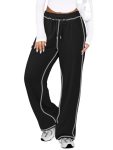 - Features:Joggers for women,Loose Fit,This black sweatpants women features a thick elasticated waistband,soft textured waist band, white contrast stitching,high rise fit and straight leg design.