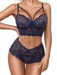 Avidlove Women Lingerie Sets Sexy Lace Bra and Panty Sets 2 Piece Lace Babydoll Outfits S-XXL Navy Blue