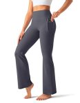 OLCHEE Womens Yoga Pants Flare Leggings with Pockets High Waist Tummy Control Workout Bell Bottom Bootcut – Grey Size Large