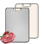 - 【Premium Surface】The upgraded titanium cutting surface is enhanced with a diamond texture to reduce knife marks by up to 70%. Unlike traditional boards, the non-porous surface resists absorbing juices, odors, or stains, helping maintain a cleaner and safer kitchen environment.